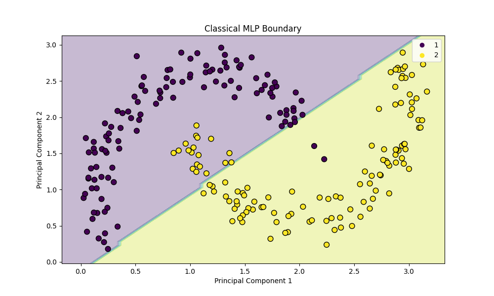 We trained both this Hybrid model and a standard Classical MLP on the circles.